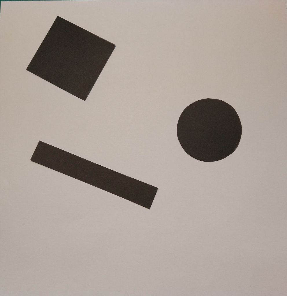 For this Learning Activity, I had to cut several shapes from black paper in a variety of sizes and place them into a square piece of white paper, one at a time, and move them around to try and find the point where the distinction between figure and ground becomes unclear.