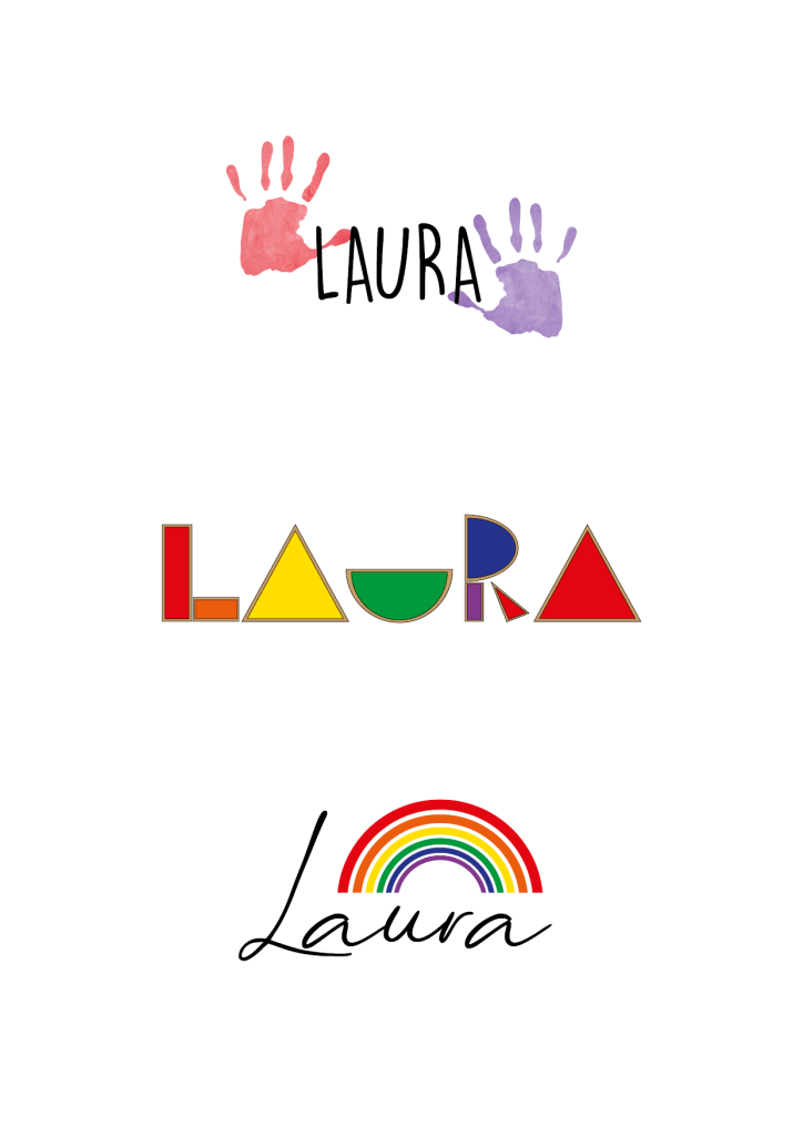 Lastly, I chose a handwritten typeface for her name and put a rainbow on top. Rainbow colours are widely used in alternative schools such as Waldorf or Montessori.