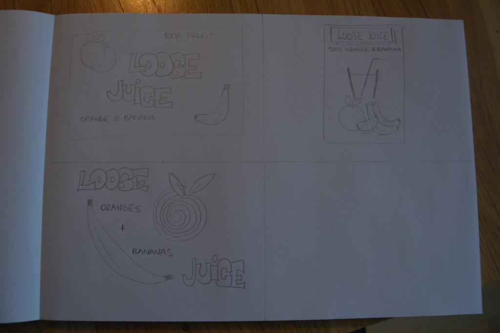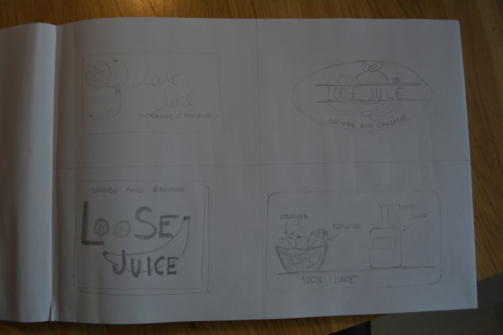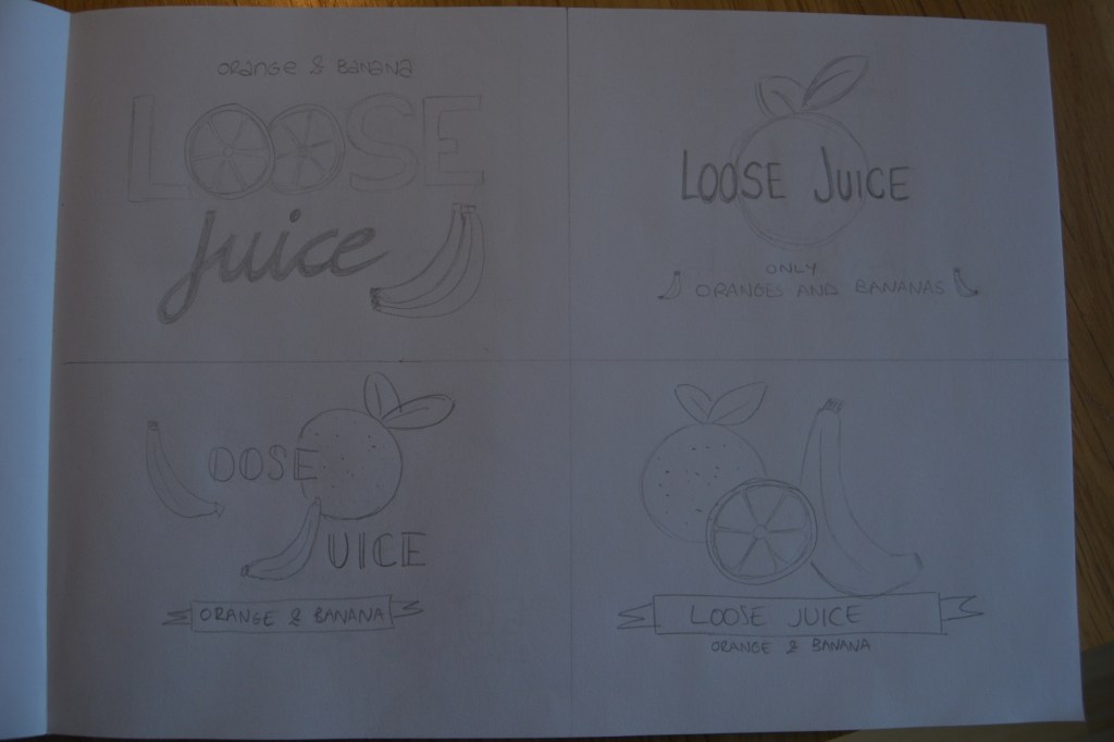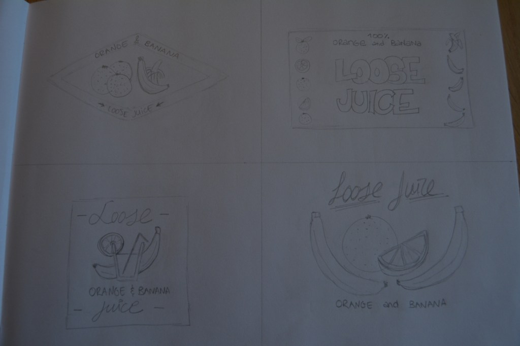 For this week’s Learning Activity I had to make an illustration for fruit juice packaging. The flavour is orange and banana, and the name of the product is Loose Juice.