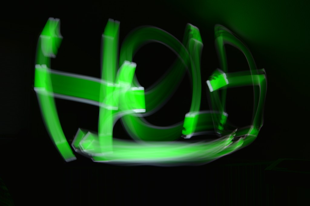 In this case I used a tripod and a timer, so I could move to the front of the camera. I used a green screen on my phone to draw the figures above. First, I tried a simple circle and in the second photo I wrote “HOLA” (hello in Spanish).