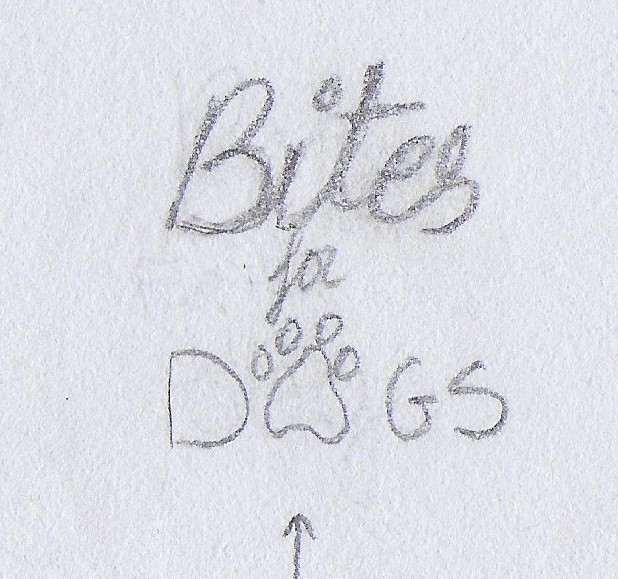 This is a slightly more elegant option due to the script font used for “Bites”. I used the paw print as well, but I integrated it into the word “DOGS”.