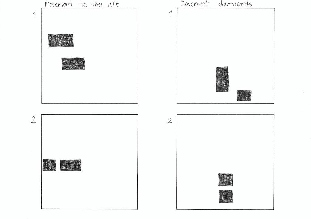 Movement to the right Placing both pieces on the right side of the square gives the impression that they are moving to the right. It doesn’t affect if I use squares or rectangles.